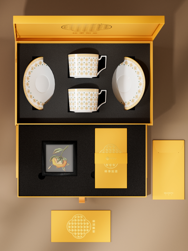 好柿连连 · 非遗缠花+杯碟礼盒