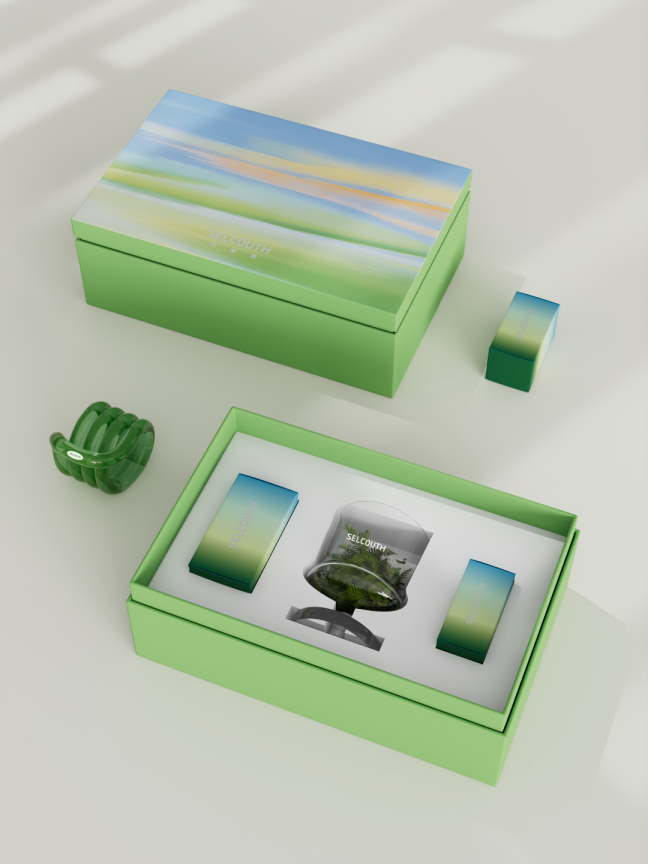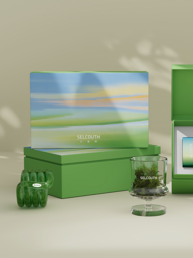 以天然“苔藓秘境”为灵感脉络,融汇器、香、触三重清韵;象征“撷野成礼,柔绿生凉”