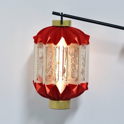 中秋红色木雕灯笼